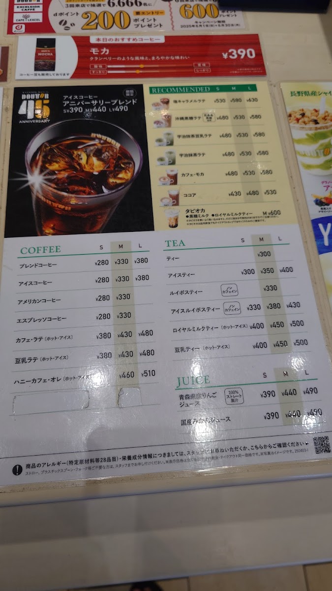 Coffee: Offering the beloved classic Doutor coffee, each cup ensures familiarity and quality, perfect for a quick caffeine fix or a leisurely sip.